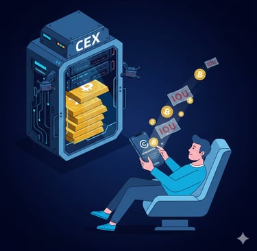 An exchange is a currency exchange booth, not a personal vault. Use it to swap, then leave. Only when you hold the private keys (the seed phrase) is the money truly yours.